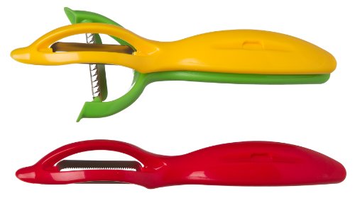 - Set of 3 multicolored peelers that snap together for easy storage; comfortable ergonomic handles for ease of use