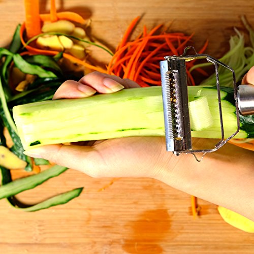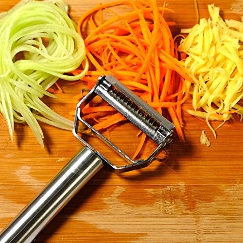 - Green Y-peeler features a julienne blade for making attractive garnish and strips from carrots or zucchini