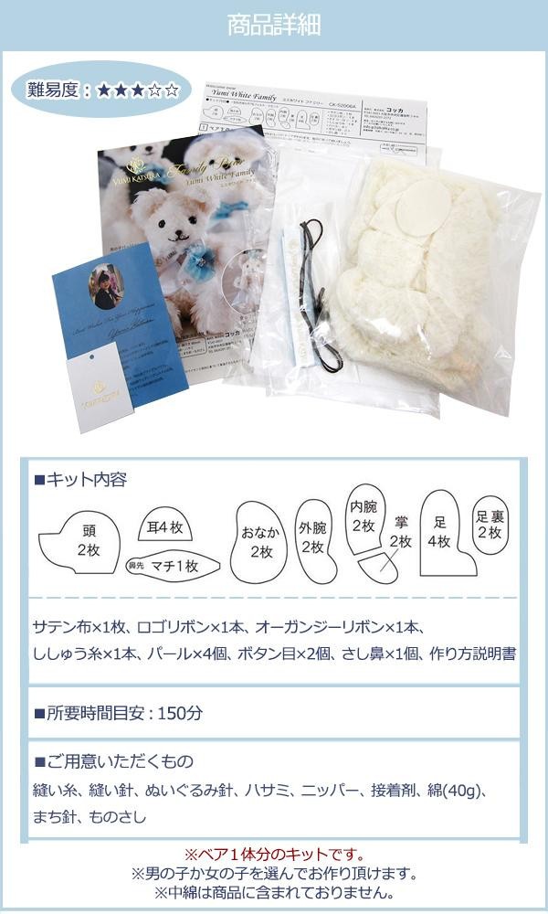 | ご家族と一緒に結婚式を挙げる際に、ウェルカムベアカップル(別売り)と一緒に飾れる子供のベア1体分のキットです。洋服の作り方、リボンと花の付け位置によって、男の子か女の子のどちらかを選んでお作り頂けます。ぬいぐるみ生地はカット済みです。 |