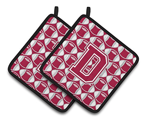 Caroline's Treasures Letter D Football Crimson, Grey & White Pair of Pot Holders CJ1065-DPTHD, 7.5HX7.5W, Multicolor