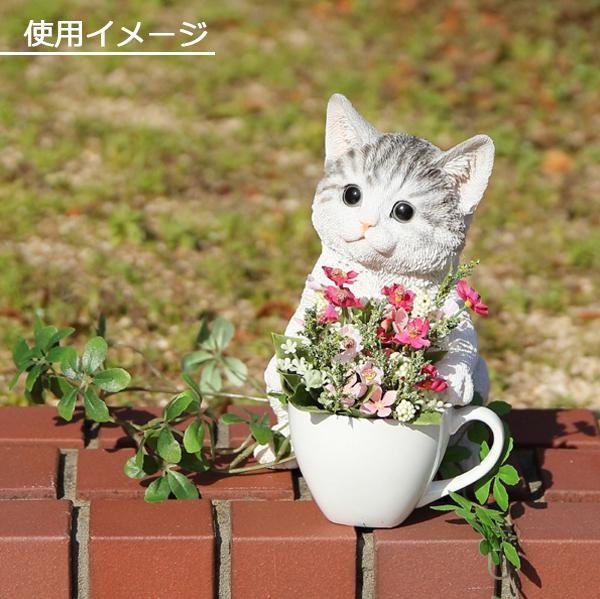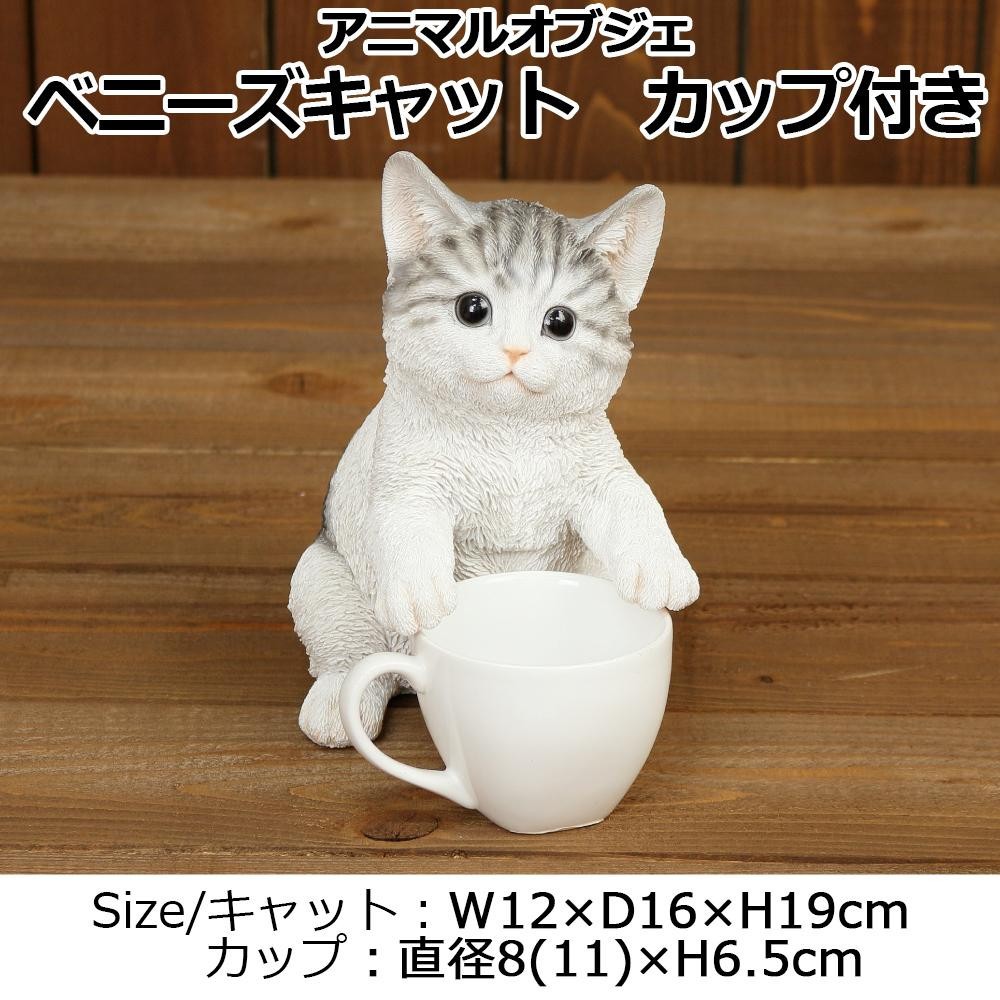 カップに寄り添う、可愛いねこのオブジェです。リビングや玄関先、屋外のインテリアにぴったりです。カップに花やグリーンを飾っても可愛い♪きれいな仕上げで、まるで生きているかのような、愛らしい仕草や表情が特徴です。 |