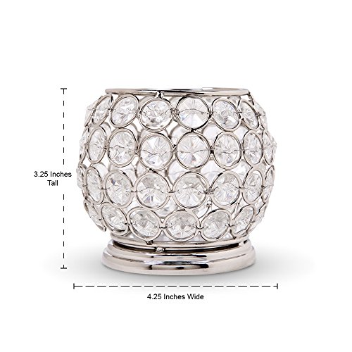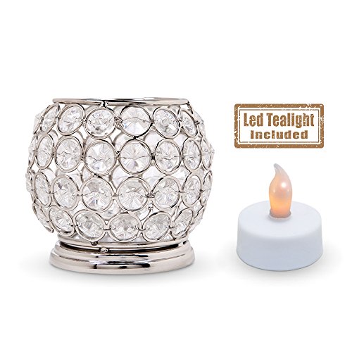 Crystal Look Elegant Tealight Holder - Silver Color Steel Small Bowl Shaped Candle Votive (Flameless Battery Operated Tea Light Included)