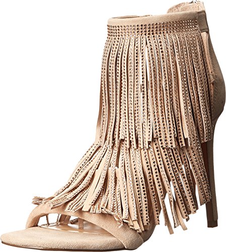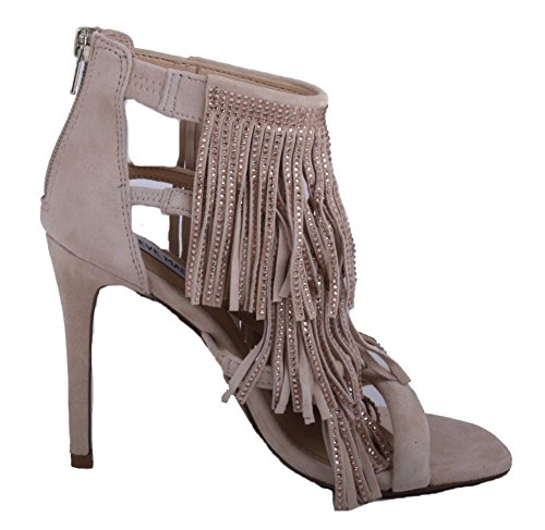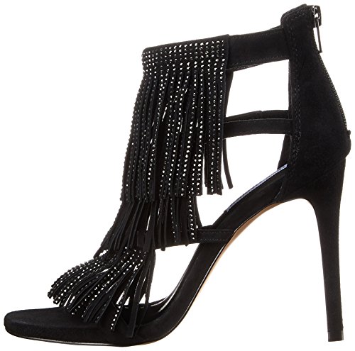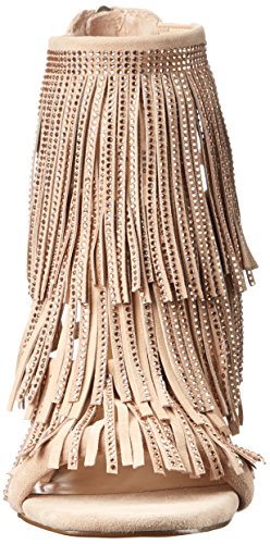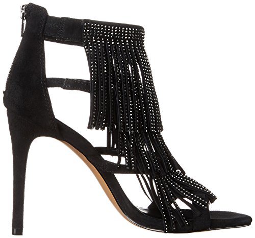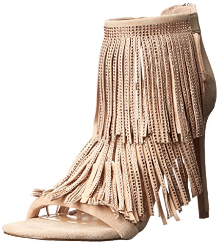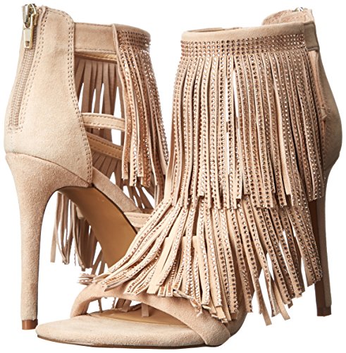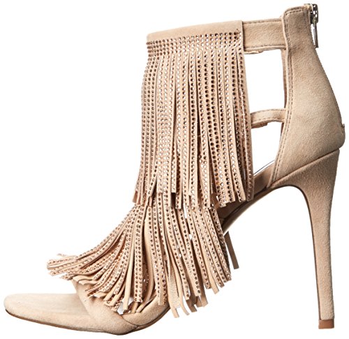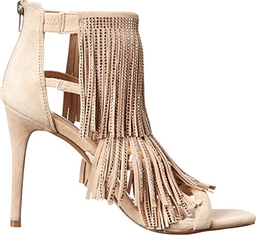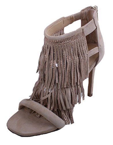 Product DescriptionBack-zip closure. Cascading fringe with rhinestone detailing. Open-toe design. Man-made lining. Lightly padded footbed. Wrapped heel. Man-made sole. Imported.0