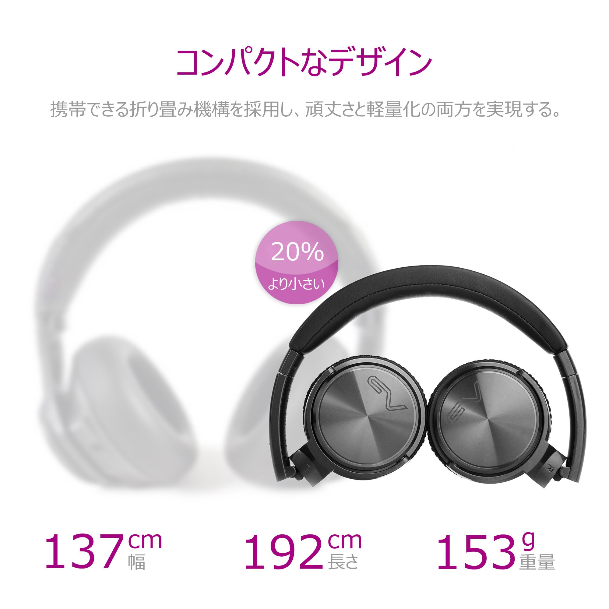 By adopting the on-ear type equipped with a 40 mm large diameter screwdriver unit, you can enjoy powerful deep bass and high resolution sound and enjoy a more natural sound field feeling.