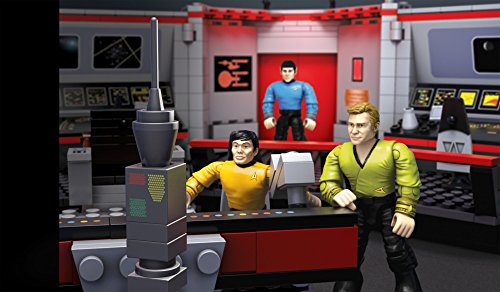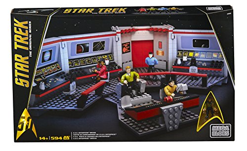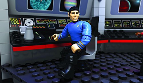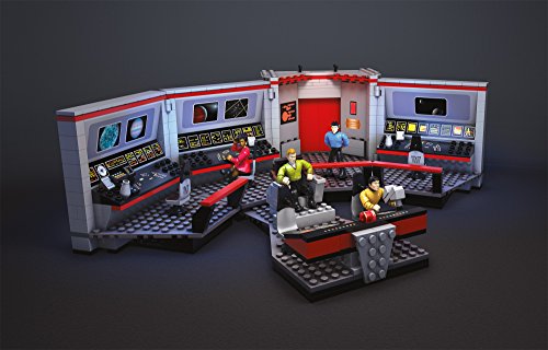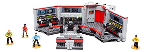 Starfleet’s finest stand at the ready on the U.S.S. Enterprise Bridge collector construction set by Mega Bloks Star Trek! Recreate your favorite moments when you build this classic bridge, and pose iconic characters like Kirk, Spock, Uhura, and Sulu at their stations in the ship’s command center. Inspired by Star Trek: The Original Series, this detailed set features a helm console, computer stations with viewscreens, turbolift doors that open, and a swiveling captain’s chair. Open up the hinged sections, or illuminate the viewscreens from behind for a dynamic display. The four highly detailed, super-poseable micro action figures each come with their own signature uniform and an authentic accessory. Ideal for ages 14 and up.