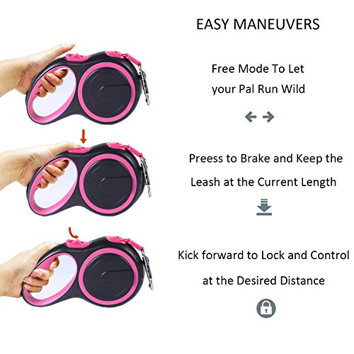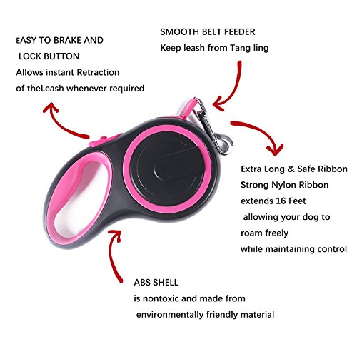 Garsum Retractable Dog Leash Perfect for u to enjoy the fun with your Dog ? Retractable dog Leash This Dog Leash can be retracted and locked into position with a simple push of a button, allowing your pet 16 feet of freedom to safely roam. ? One Button Brake Lock System To stop the leash, press brake button with your thumb. For convenience, it is also designed with a extra button to remain the leash static. ? Durable Material Designed with high quality ABS plastic casing with ergonomic grip and anti-slip handle. ? Considerate Design A rubber ring in the interface between the ABS plastic casing and the end of flat rope, preventing pets from potential dangers caused by quickly retraction of the rope. ? Limit of Weight With weight up to 110 lbs. This Retractable dog leash works for large breed and medium breed dogs. ?Specifications: Weight: 0.3 KG Shell material: ABS plastic Rope material: Nylon Ribbon Adjustable length: 16 Feet nylon leash. ?Specifications: ? Do not use this dog leash for dogs that exceed the specified weight 110 lb of the dog leash. ? Never try to open the plastic casing or disassemble any other parts.