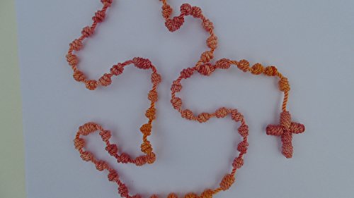 Holy Spirit Custom Dyed Cord Rosary with Prayer Card (Brilliant Red & Orange)
