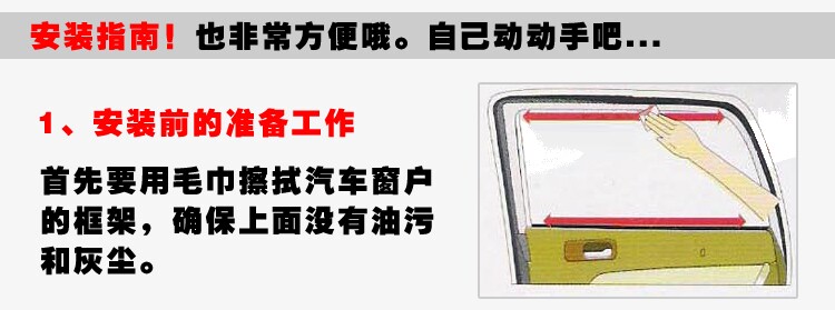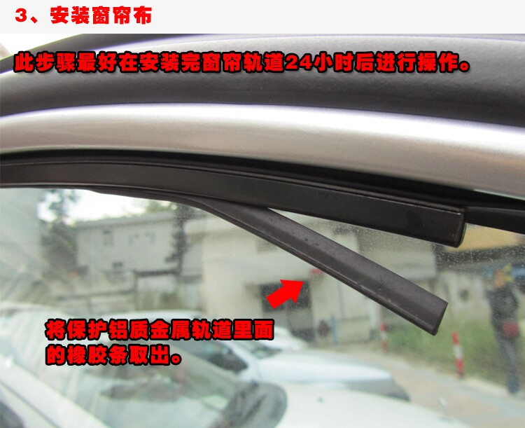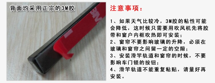 • Before the car window frame rails affixed, please paste the location clean, in order to increase pasted fastness.