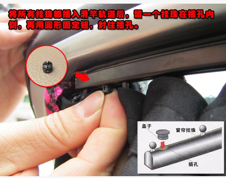 · After all rail indeed fixed firmly affixed, and then arranged into a curtain rail on the line, after the placement is completed, the import side of the hole in the side rails, accessory bag with holes in the lid snaps into, curtains to prevent slipping.
