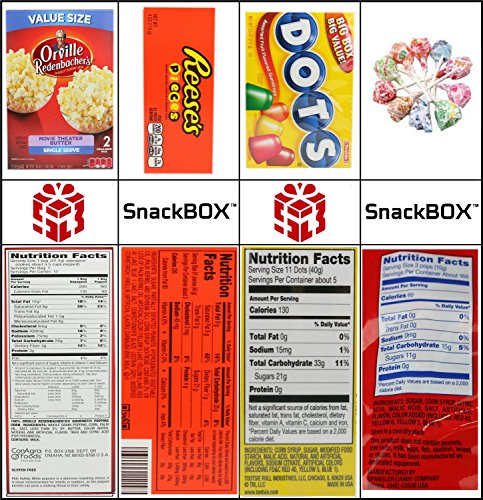 - PERFECT FOR DATE NIGHT: 1 Night DVD Rental Code Gift Card For Redbox, 2 Orville Redenbacher's Movie Theater Butter Single Serve Bags, 1 5oz Mike and Ike Movie Theater Box, 1 6.5oz Dots Movie Theater Box, 1 4oz Reese's Pieces Movie Theater Box, 1 5oz Hot Tamales Movie Theater Box, 2 Tootsie Pop and 4 DumDum's