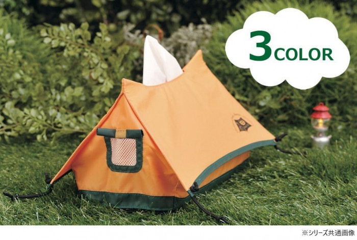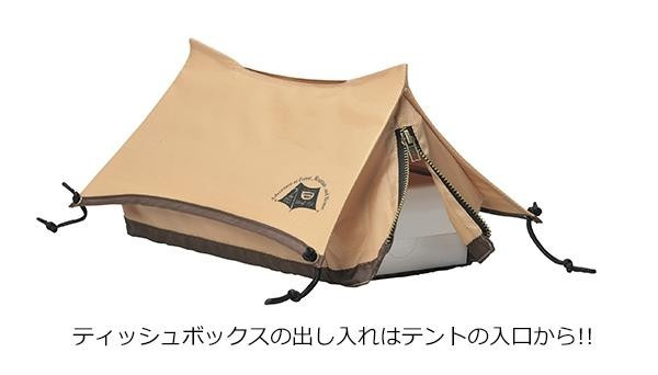 ユニークな形のティッシュボックスケース!!テントの入口がティッシュボックスの入口になっています。