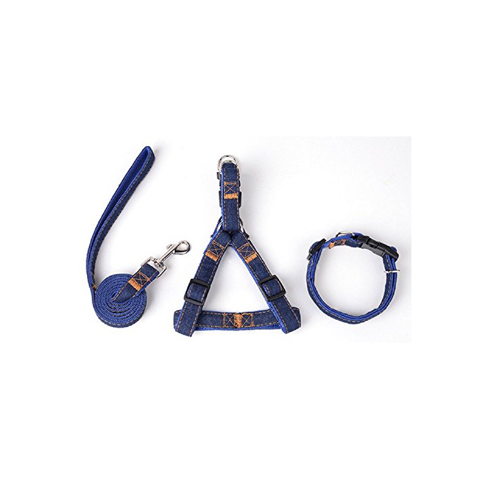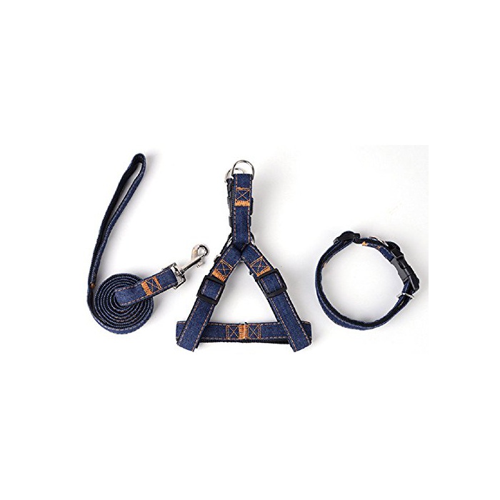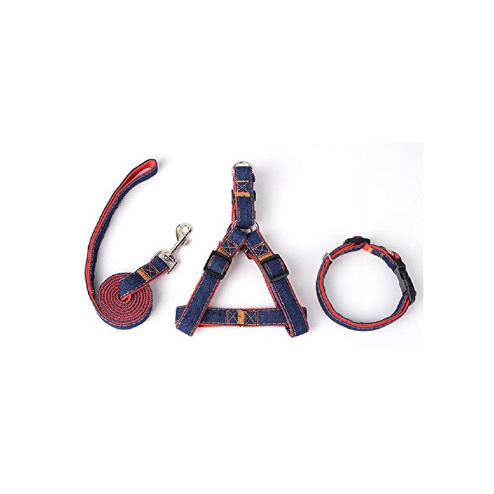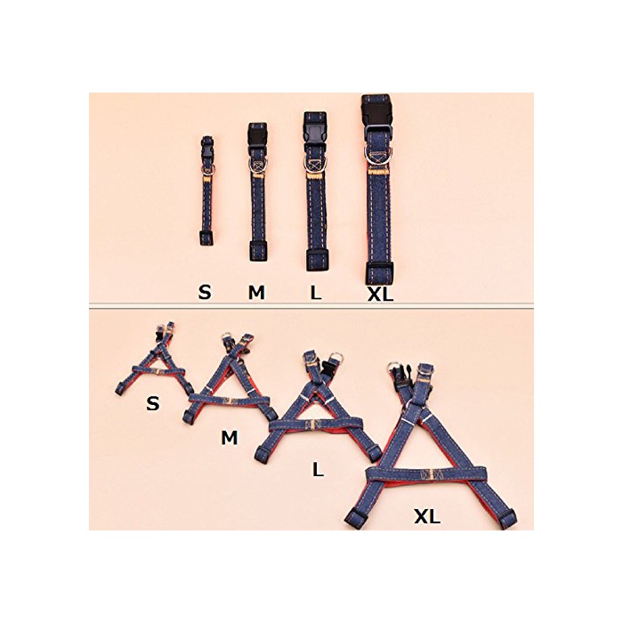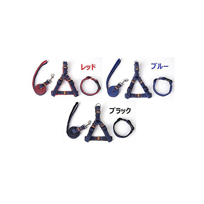 원본상품명:(graxia)デニム ハ?ネス リ?ド 首輪 タオル付き 4点セット 3色 4サイズ 調節可能 小型犬 中型犬 大型犬