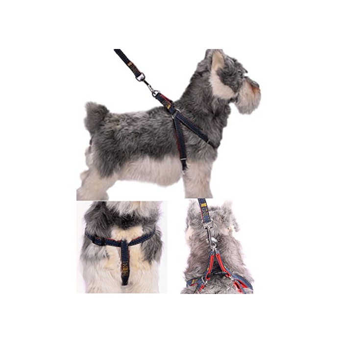 Graxia (graxia)데님 하네스 리드 목걸이 타올 부착 4점 세트 3색 4사이즈 조절 가능 소형견 중형견 대형견
