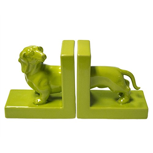 Benzara Well-Designed Ceramic Dachshund Bookends, Green, Set of 2
