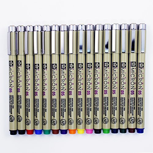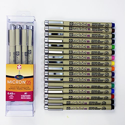 Sakura 50075 16-Piece Pigma Micron 05 Assorted Colors Cube Collection Ink Pen Set
