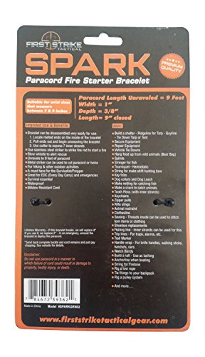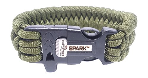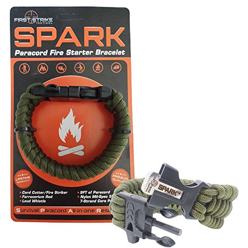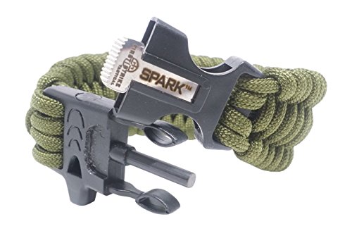 SPARK (TM) Fire Starter Paracord Bracelet with Emergency Whistle Side Release Buckle - Magnesium Fire Steel - Clasp with Knife Cutter & Striker Accessories - Survival Gear Kit on your wrist - Black 550 Mil-Spec 7-Strand Parachute Cord Rope - Uses include
