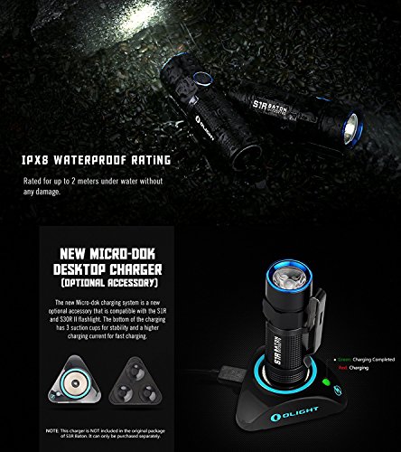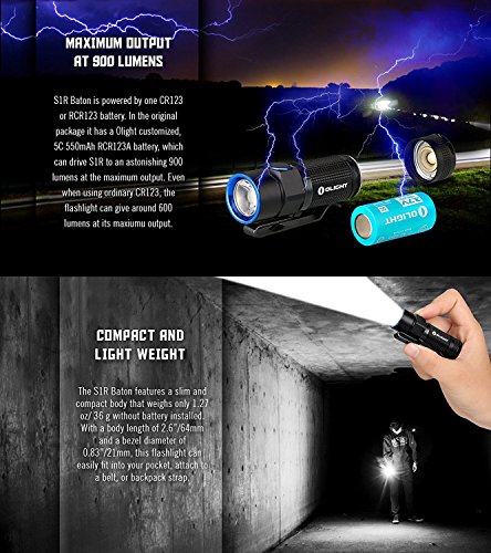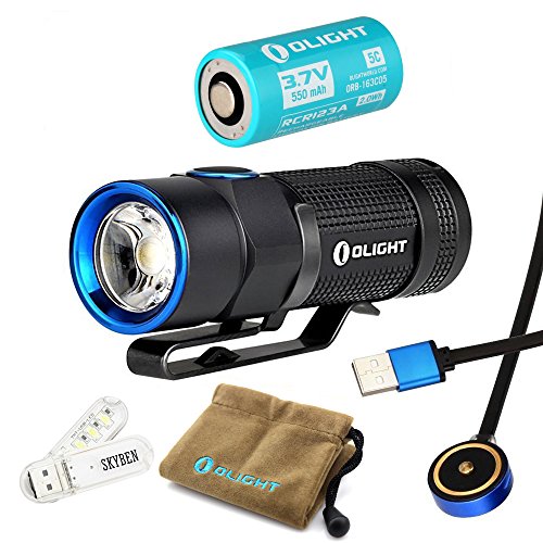 Olight S1R Baton Cree XM-L2 LED 900 Lumens Rechargeable EDC Flashlight With 550mAh RCR123A Battery and Skyben USB Light