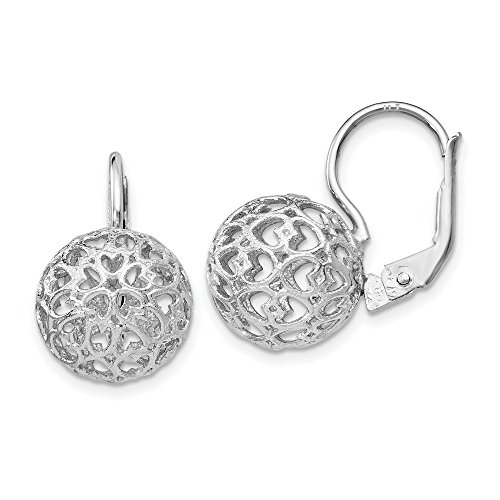 12mm Sterling Silver Heart Ball Leverback Earrings - 3.3 Grams in Sterling Silver - JewelryWeb Style: QTE346134SS - FREE gift-ready jewelry box