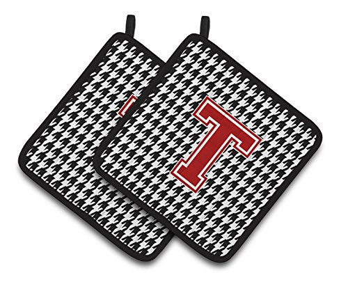 Caroline's Treasures Letter T Monogram - Houndstooth black Pair of Pot Holders CJ1021-TPTHD, 7.5HX7.5W, Multicolor