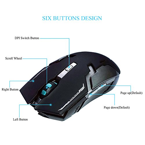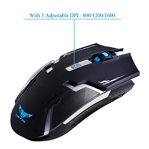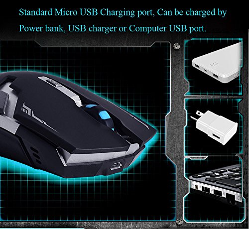 Wireless Rechargeable Mouse, 2.4GHz Wireless 6 Buttons Rechargeable Mouse Silent Buttons Built-in 800mAh Battery 800-1600dpi for PC Computer Notebook by YSSHUI
