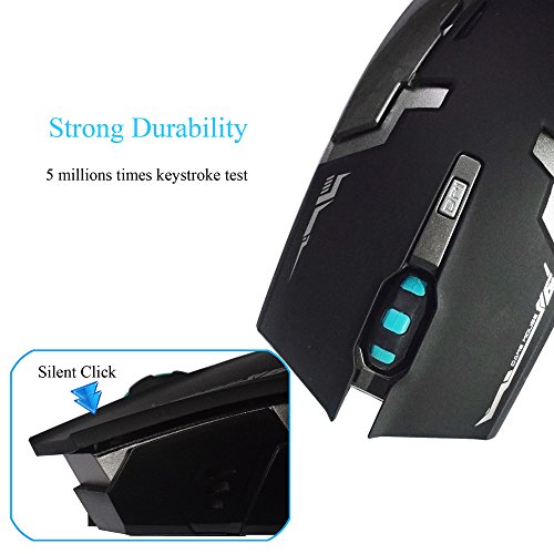 Silent Click: This mouse adopts noise reduction switch, which creates a quiet space for you. No click sound design makes you silently defeat the enemies. At night, it can keep your family have a good sleep and also keep you in exciting gaming environment.