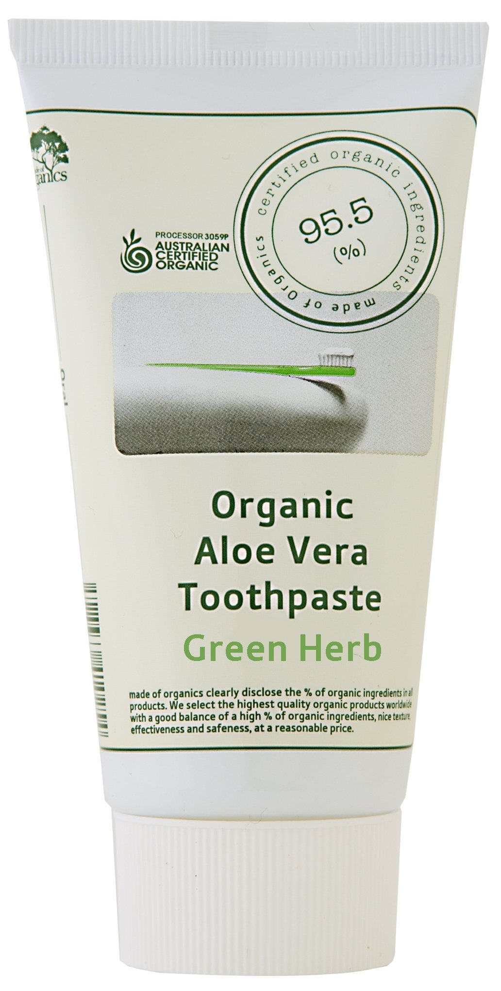 Organic aloe vera cleanses the mouth to prevent bad breath, natural sea salt keeps the gums healthy.