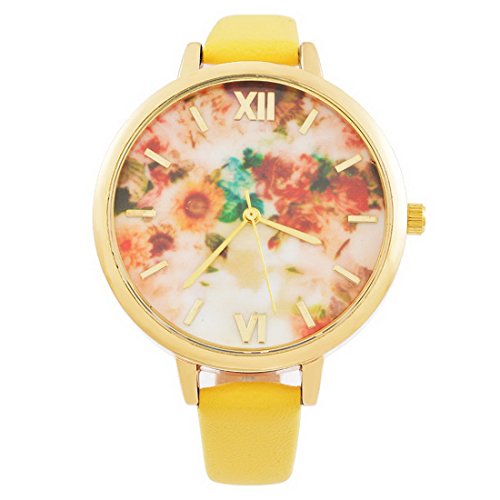-. Title : Souarts Womens Artificial Leather Flower Dial Quartz Analog Wrist Watch 22cm