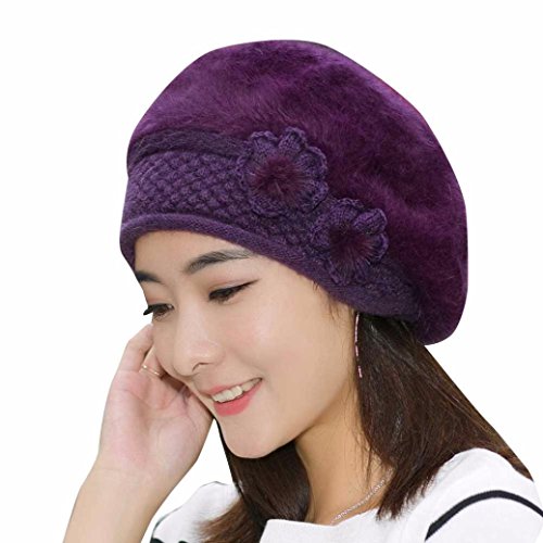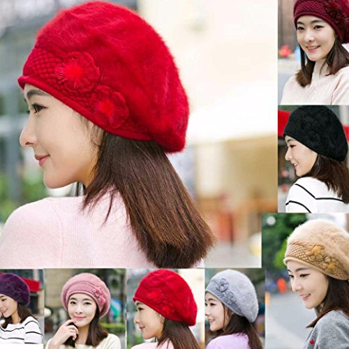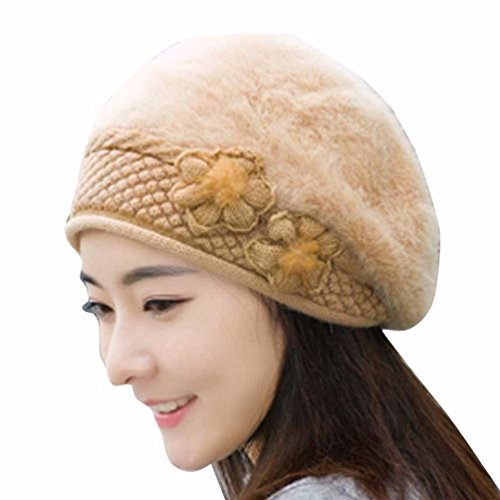 (Staron)/Accessories/Hats/DIRECT FROM USA/Staron Women Hat Winter Flower Knit Crochet Beanie Hat Solid Warm Cap Beret