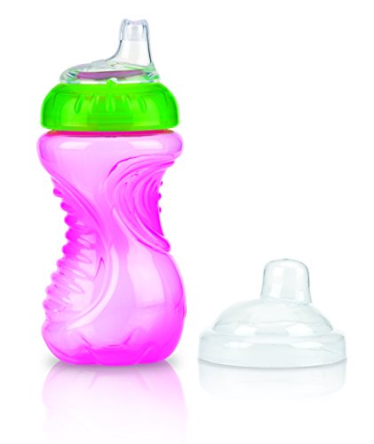 -. Feature : No-Spill soft silicone spout prevents leaks and spills / Spout is gentle on child's tender gums and teeth / Textured grip sized perfectly for child to hold / Colors may vary. You will receive one of the following colors: Purple with Pink top, Pink with Green top, Yellow with Red top, Blue with Yellow top, Green with Orange top, or Red with Blue top. / 6 Months + / BPA Free