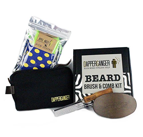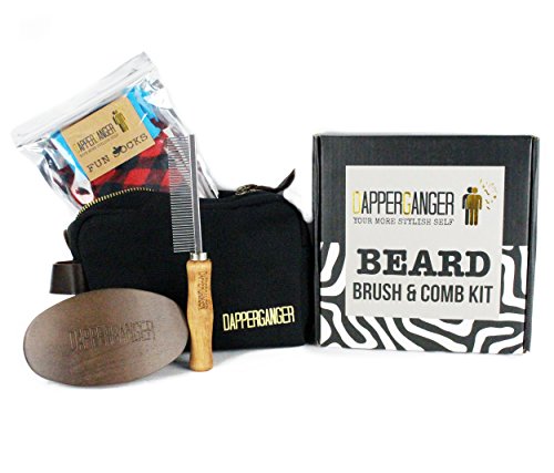 Studio : DapperGanger Publisher : DapperGanger Binding : Health and Beauty Product Description The Perfect Premium Gift Box for every bearded man who wants to keep his beard shiny and brilliant but can't find a painless brush that works. Here's a huge problem you face right now. It's finding a high quality professional over sized brush that is long lasting you are also plagged with cheap wooden combs that always break. But that's not the end of your problems with grooming, and styling your wild beard and mustaches perfectly every time. What makes this even worse is the fact that if brushing your beard is painful you won't do it consistently ! Which means your beard will look dull, mangy and unkept, you wont look your best and your self confidence will suffer. And, worst of all, many men with beards can't get past the idea that all brushes are created equal so you should buy the cheapest ones. All this can make trying to make your beard look boss a nightmare! But luckily for you, there's now a solution! So, if you're a bearded man and who really wants to keep his beard shiny and brilliant but can't find a painless brush that works, "DapperGanger Beard Metal Tooth Comb and Military Oval Curved Brush Set Includes Premium Vintage Style Anti Static Wood Handle with Stainless Steel Hypo Allergenic Fine Comb with coarse teeth Black Travel Custom Carrying Case Extra Gentlemans Fun Socks. This Perfect Designer Gift Box for Men " is the answer you've been looking for! Avoid dandruff making that thick beard soft to groom as if you are a professional barber. Maintenance and conditioning of your facial hair with our dual action combo of products has never been so easy. Tackle all mens facial hair types: long, short, medium, large, with our stiff boars brush. Our round stiff firm yet soft brush will act as a softener plus exfoliator making your brilliant beard smooth to the touch. These are perfect gifts included for any male. Our engraved comb will make trimming your mountain beard a cinch. Your beard can grow full yet it will never be hard to maintain. 0