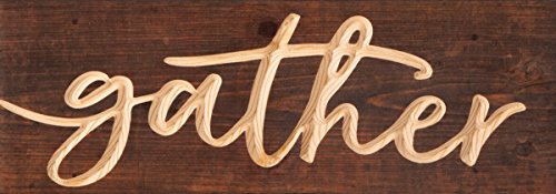 Gather Script Brown 15.75 x 5.5 Inch Pine Wood Carved Plank Wall Plaque Sign