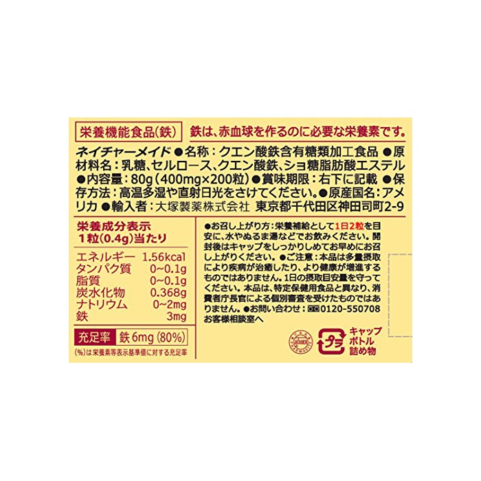 원본상품명: 大塚製? ネイチャ?メイド ?(アイアン) 200粒