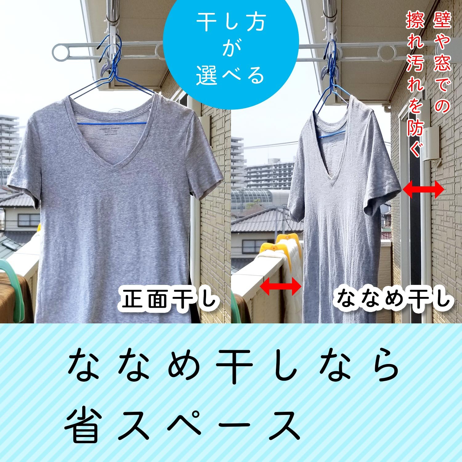 ● In the case of diagonal drying, it can be dried in a space-saving manner.