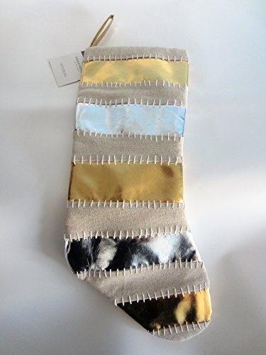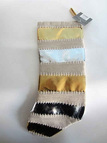 19 In Silver Gold Faux Leather Stitches Canvas Christmas Holiday Stocking