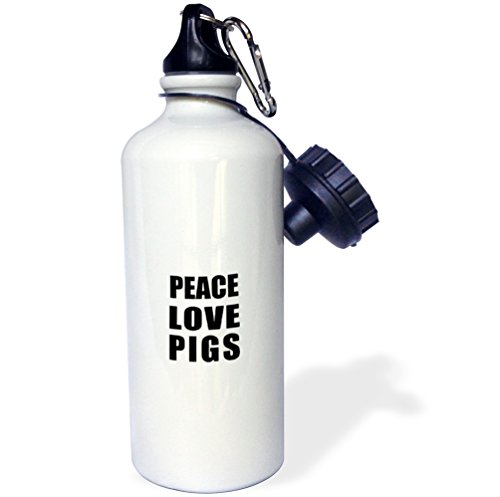 3dRose wb_184898_1 Peace Love and Pigs-Things That Make Me Happy-Pig Lover Gift Sports Water Bottle, 21 oz, White