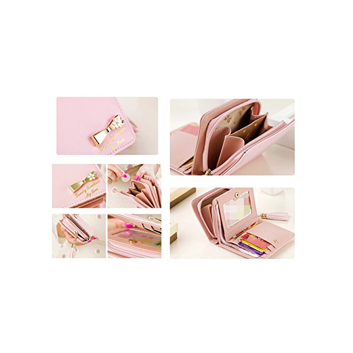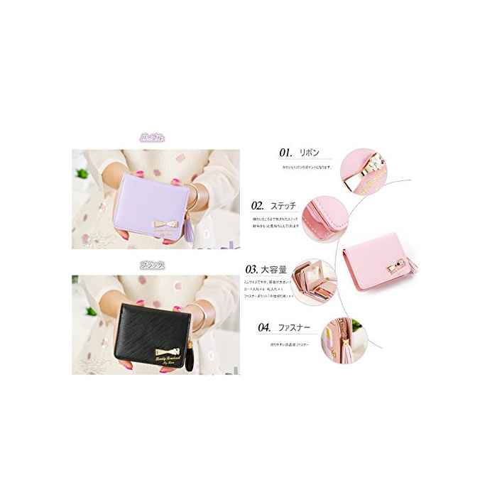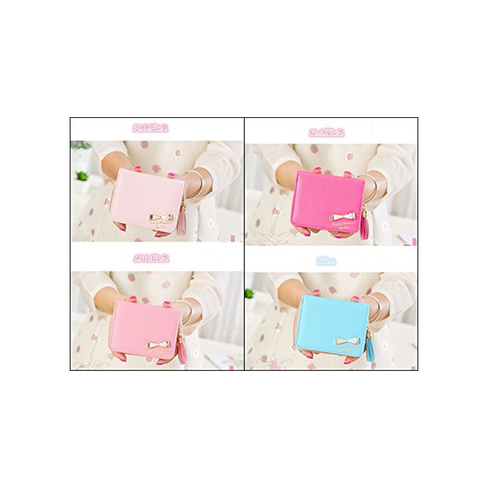 【페어《―후아리》】 Fair Fairy 6색에서 선택할 수 있 리본이 매우 귀여운 미니 지갑 손바닥 사이즈 반 접기 워렛 버튼 아코디언 극소 지갑 레이디스 지갑 용돈 만들어 넣음(
