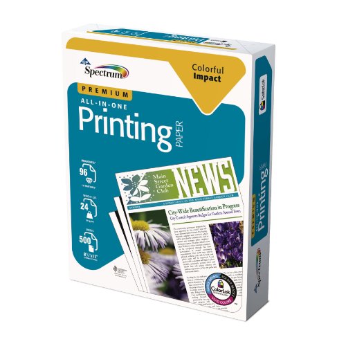 Spectrum Premium All-In-One Printing paper helps important documents come to life. Its bright white shade provides for a high level of contrast, making images more brilliant and messages even stronger. With its special surface treatment, you’ll get consistently impactful results from both ink jet and laser printers. Ideal for marketing materials and top-level printed pieces that need to drive results, Spectrum Premium All-In-One Printing paper is a must-have performer.Feature