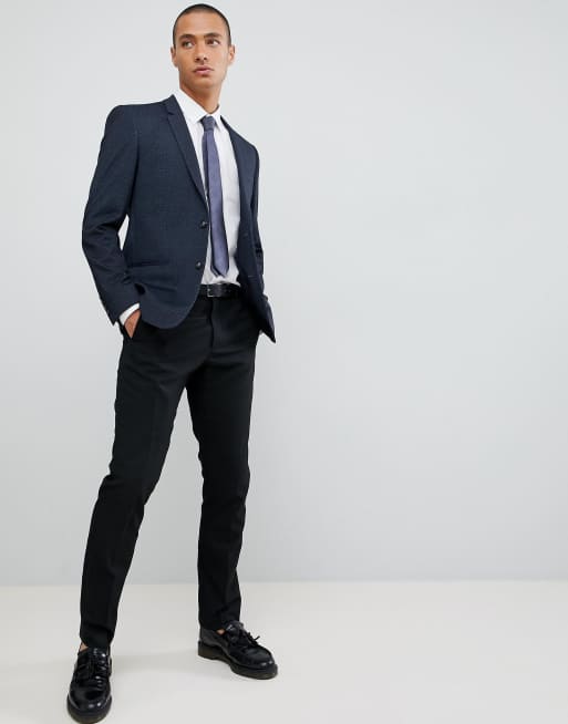 River Island Skinny Fit Jersey Blazer In Navy