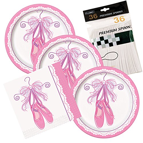 Pink Ballerina Party Themed Dessert Plates And Napkins includes Spoons Serves 32