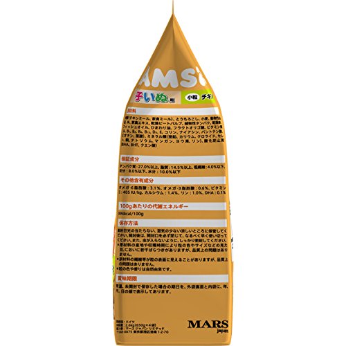 原材料:肉類(チキンミール、家禽ミール)、とうもろこし、小麦、動物性油脂、米、家禽エキス、乾燥ビートパルプ、植物性タンパク、乾燥卵、フィッシュオイル、ひまわり油、フラクトオリゴ糖、ビタミン類(A、B1、B2、B6、B12、D3、E、コリン、ナイアシン、パントテン酸、ビオチン、葉酸)、ミネラル類(亜鉛、カリウム、クロライド、セレン、銅、ナトリウム、マンガン、ヨウ素、リン)、酸化防止剤(BHA、BHT、クエン酸)