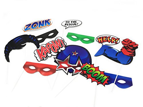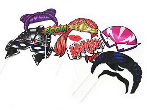 Superhero Themed Party Photo Booth Props Decor- 18 Pc Kit