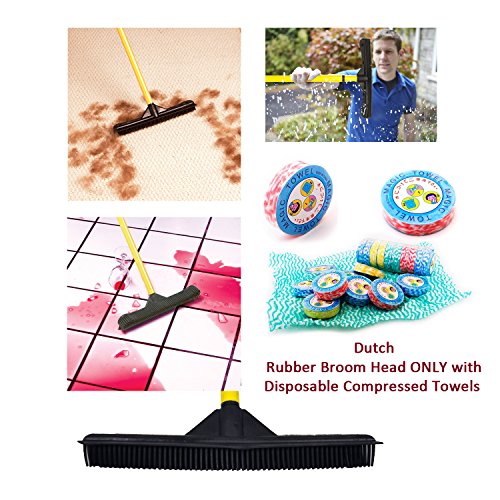 -. Feature : Dutch Rubber Head Only! Fits any Dutch handle! 100% natural rubber. Head only. Pole purchased separately! If you already have a pole, or prefer a different style, then you can also just get the broom head by itself to save money. / 20" head, you will clean more in less time. It is almost twice as wide as the regular, indoor model. / This large outdoor broom head is a commercial grade model that can be effectively used almost anywhere / Electrostatic action lifts dust, hair and lint! / Compressed towels are a must have for everyone! Simply add water and the tablet turns into a 11.5"x15.5" Rayon towel that can be used for cleaning your body, a variety of surfaces, and tools.