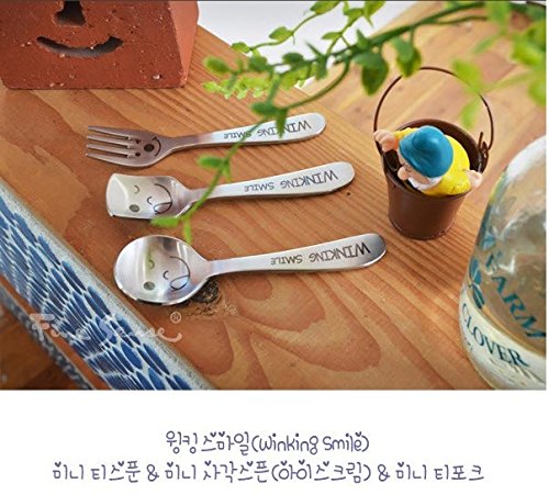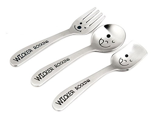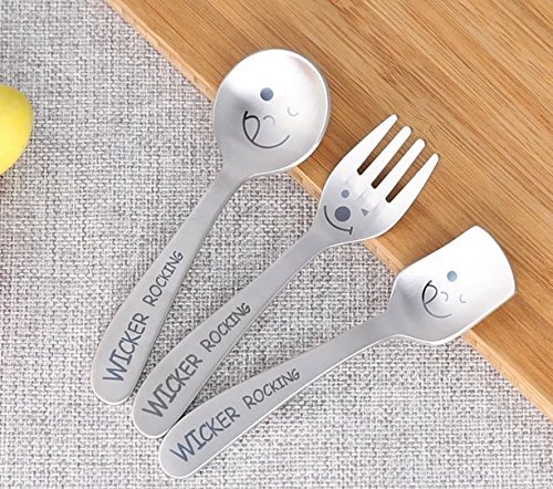 Astra shop Cute Smiley Face Fork and Spoon Set, Kids Stainless Steel Flatware Utensils Set of 3