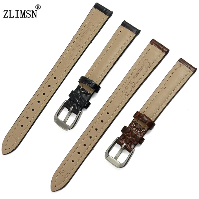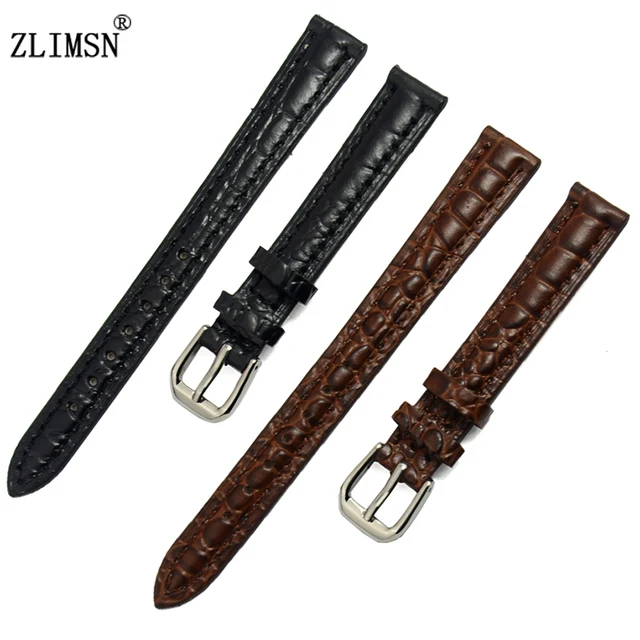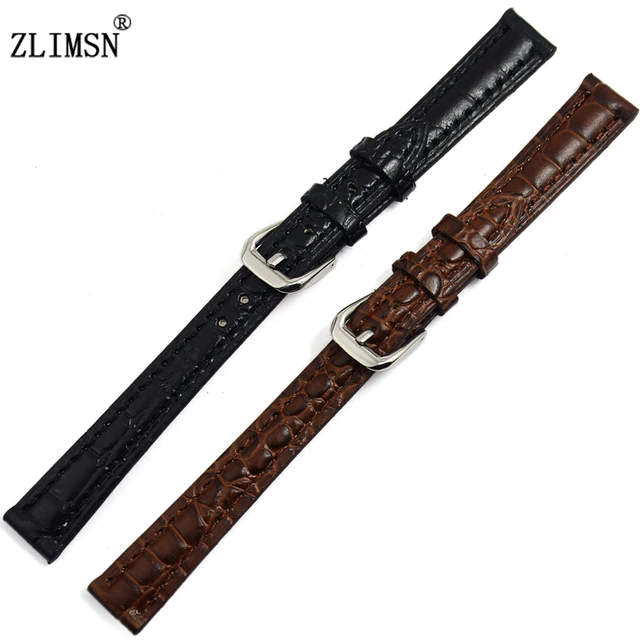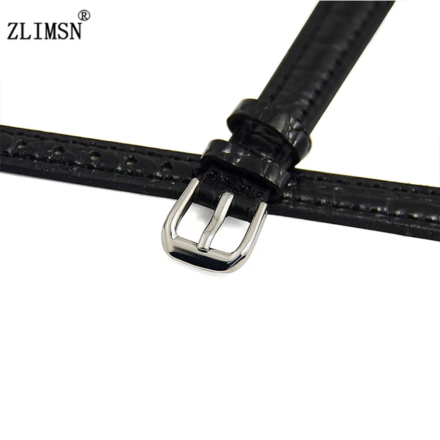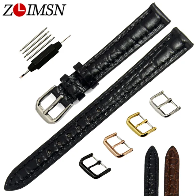 ZLIMSN 100% 블랙 정품 가죽 시계 밴드 스트랩 핀 버클 가죽 밴드 Sweatband 손목 남성 여성 시계 줄 12 미리메터