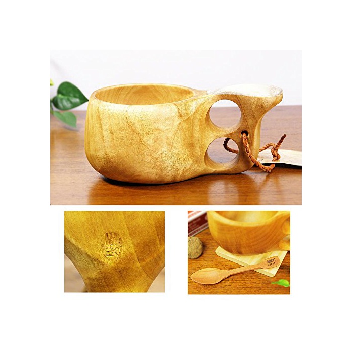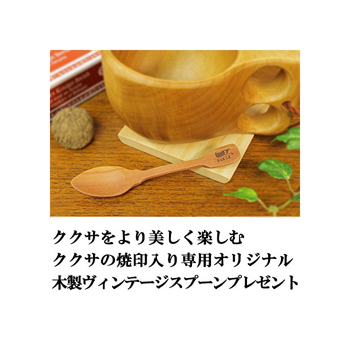 북유럽 필란드 목제 진짜구쿠사 Kuksa Koivumaa(잉어마)190cc 즈노장식 자작나무의고부사용 설명서상 포장 목제 빈티지 스푼 부착