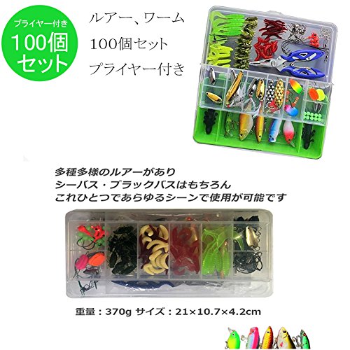원본상품명: ルア? セット 釣具セット100個セット ソフトルア?ハ?ドルア? ワ?ム フライ ケ?ス付き