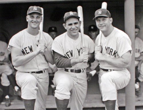 The New York Yankees Roger Maris, Yogi Berra, and Mickey Mantle, Classic Black and White 8x10 Photograph.