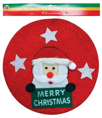 Festive Merry Christmas Greeting Wreath - Hanging Santa Claus Holiday Door Window Decoration