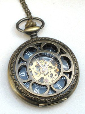 -. Title : Steampunk VINTAGE FLOWER Pocket Watch Mechanical Chain Steam Punk Fob Brass