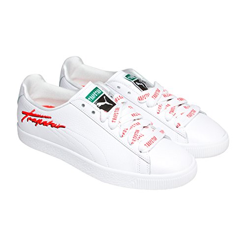 Studio : PUMA Publisher : PUMA Binding : Apparel Product Description Puma Men's X Trapstar Clyde fashion sneakers feature a leather upper and tonal stitched PUMA formstrip and TRAPSTAR branding at side. Lace-up closure for secure fit. Lightly cushioned tongue and collar. Lightly cushioned foot-bed and midsole for comfort and support. Durable rubber outsole. 0